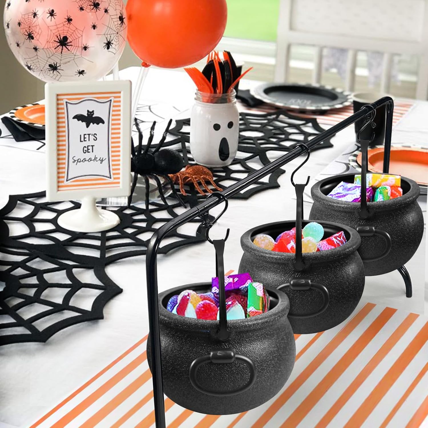 🎃 Halloween Serving Set — 3 Witches’ Cauldrons on Rack